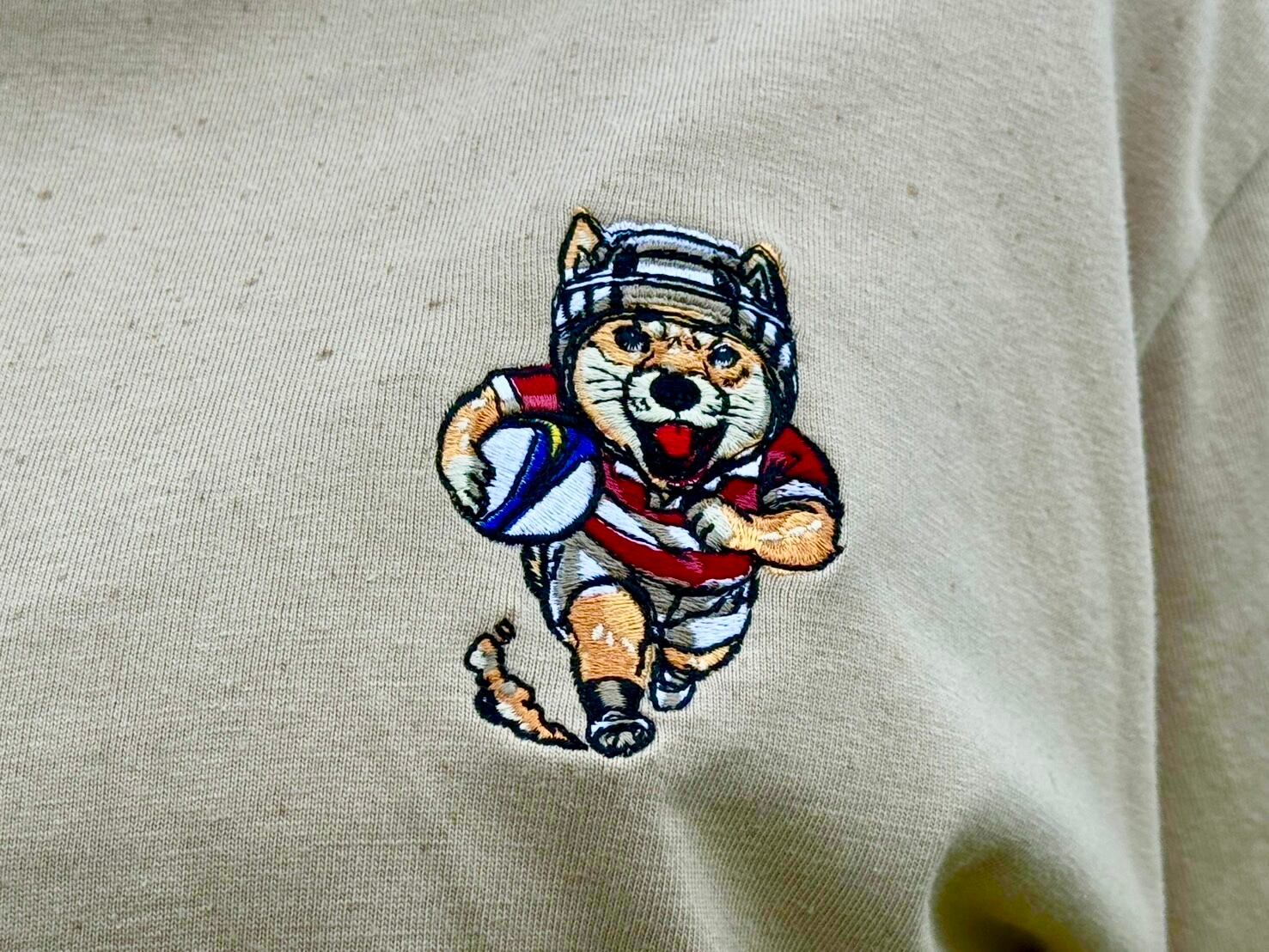 柴ラグ刺繍Tシャツ ベージュ ※サイズ変更等の返品は一切対応しかねます ワンポイントでもラグビーアピールできる夏の最高アイテム。刺繍の再現度も高く、どんなシーンにも使いやすいアイテムです。 6.6oz 綿100% カラー ベージュ